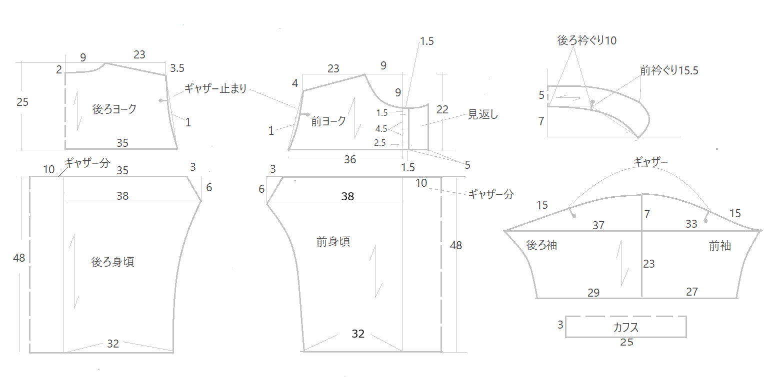 公開しているブラウスの型紙はこちら。