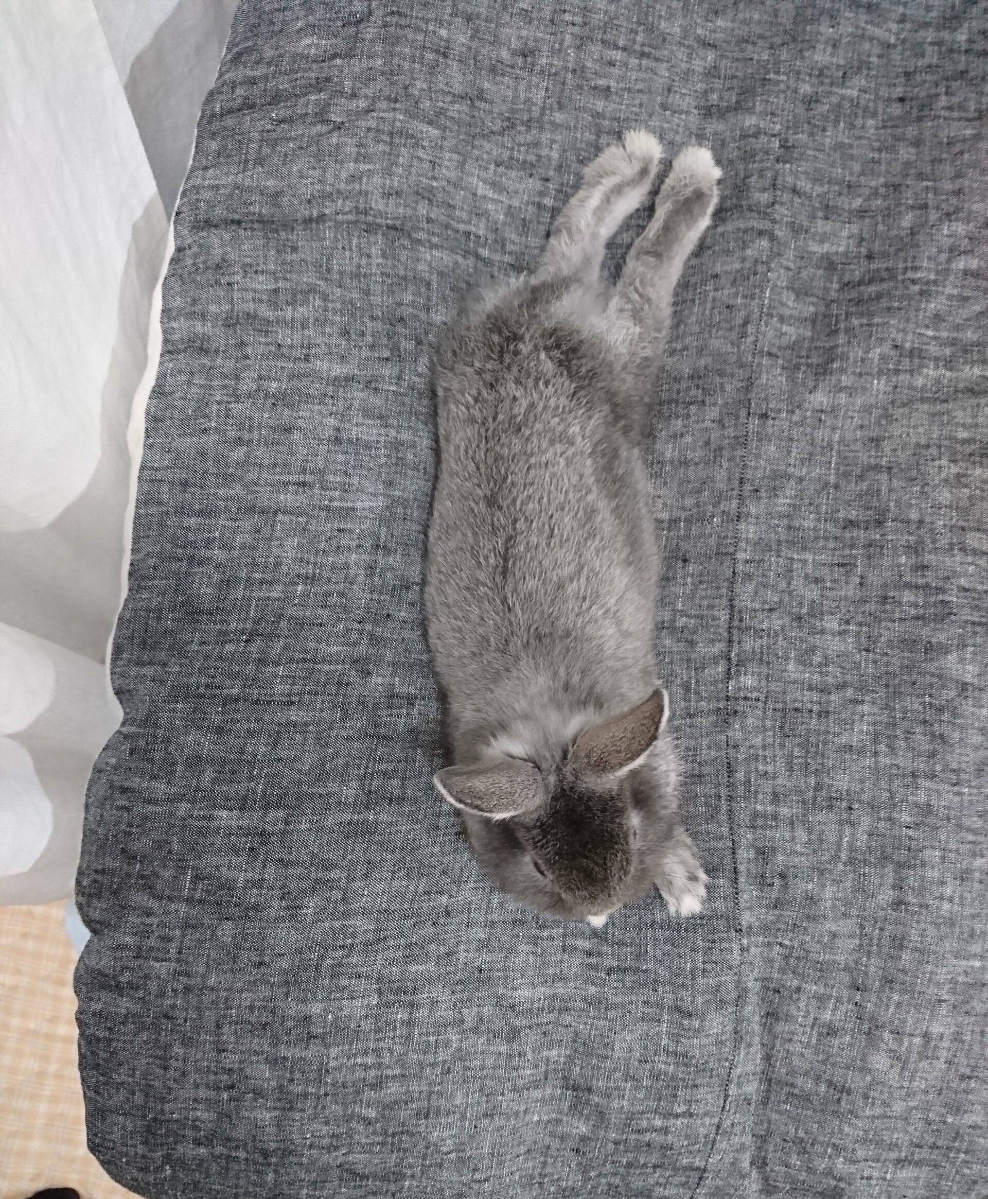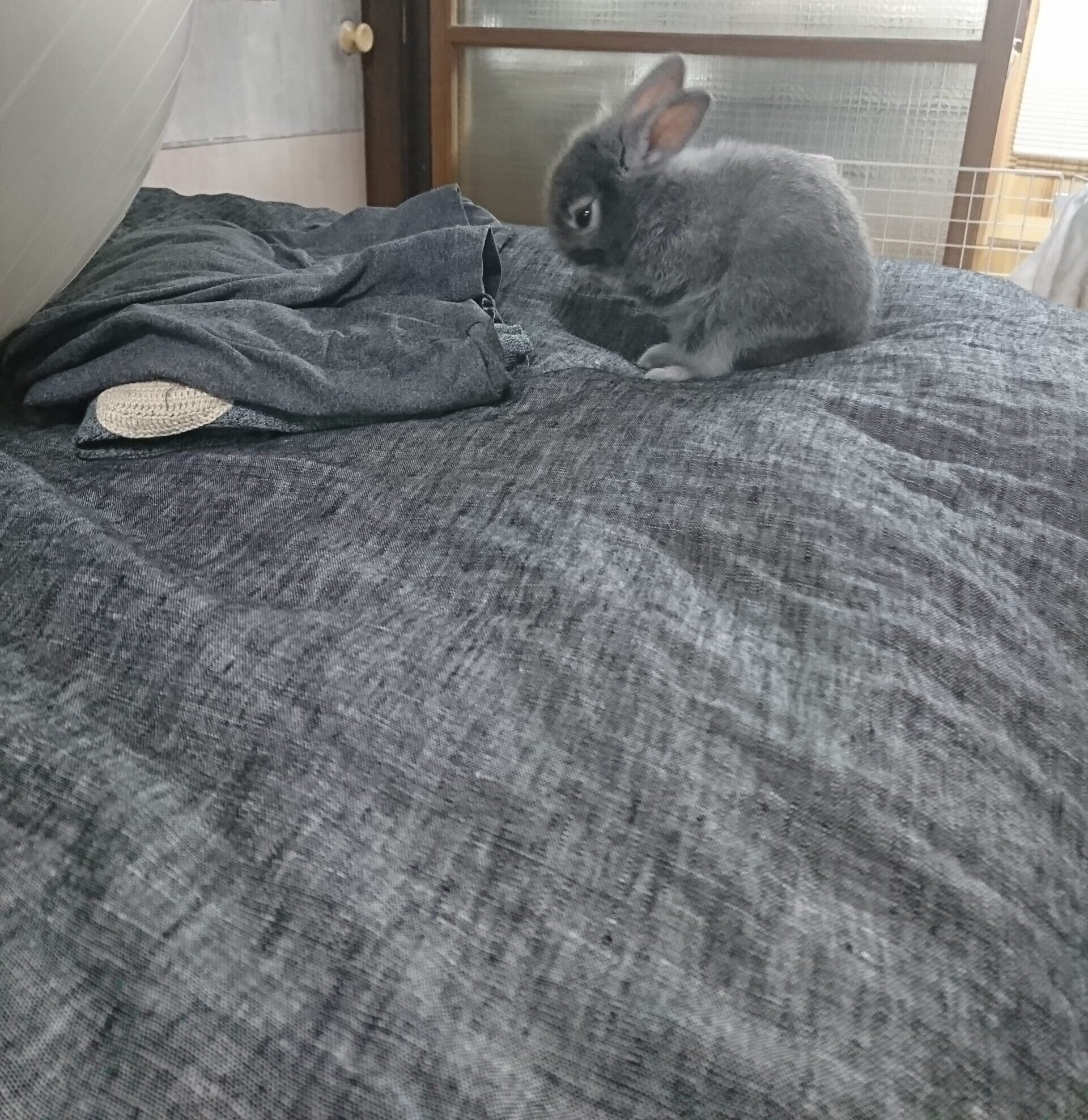 こちらはお布団カバーと枕カバーをお揃いで作りました。シンプルでミニマムなインテリアがお好きな方にはおすすめです。私事で恐縮ですが、我が家のうさぎがなぜかとても気に入ってしまい、いつもこの上に居ました(同色なので落ち着くのでしょうか)