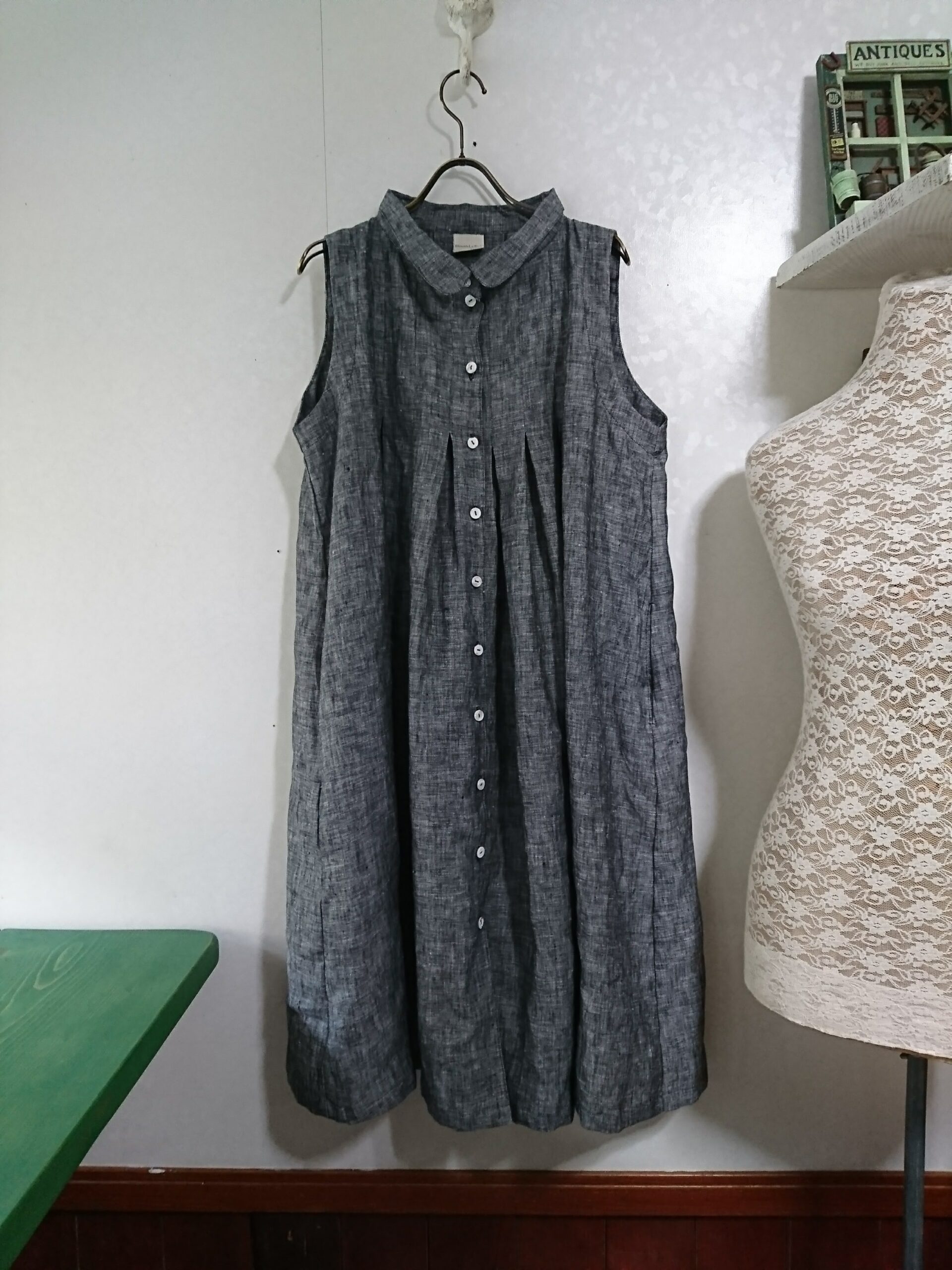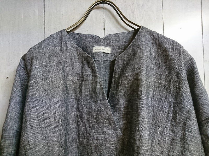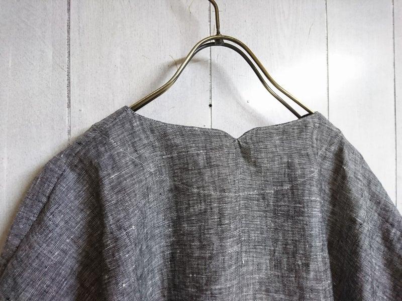 リネン生地は水通しをした後、本来の風合いがわかる物なのですがこのダンガリーブラックは更にいい風合いを醸し出してきて、初めて注文した時などは早く服に仕立てたい!と、制作意欲をかき立てられました。