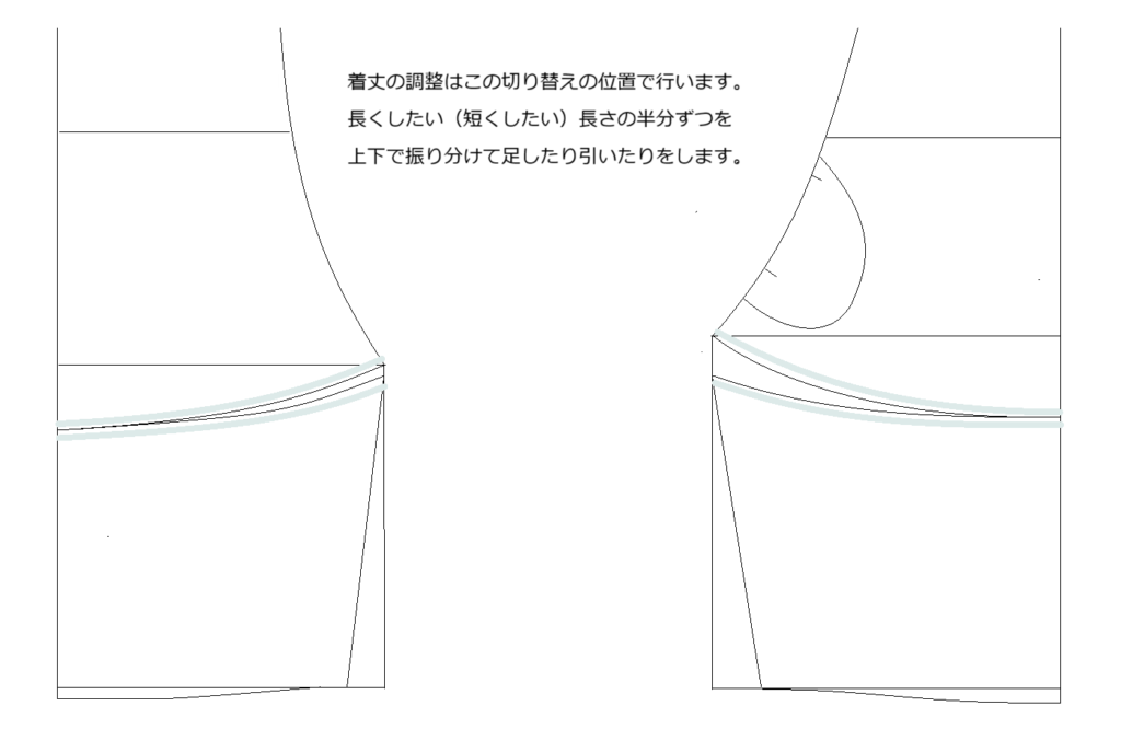 スカート部分で切り替えて、コクーンシルエットにしました。