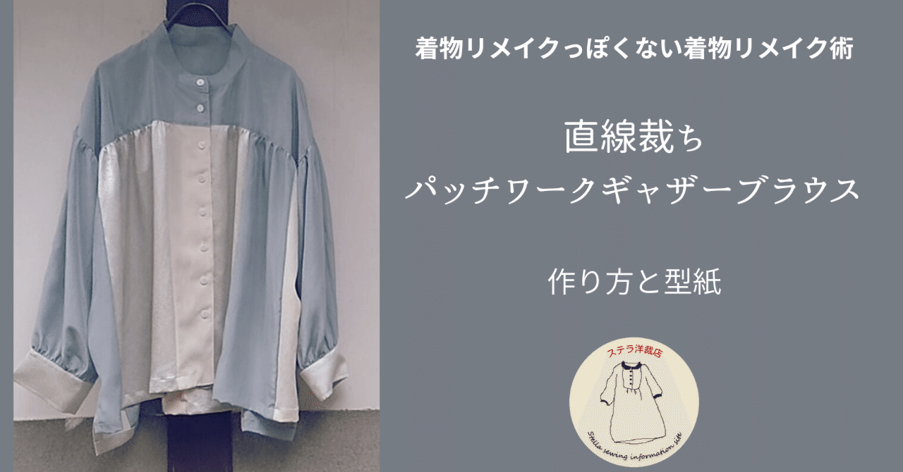 直線裁ちパッチワークギャザーブラウスの型紙と作り方の解説|ステラ洋裁店