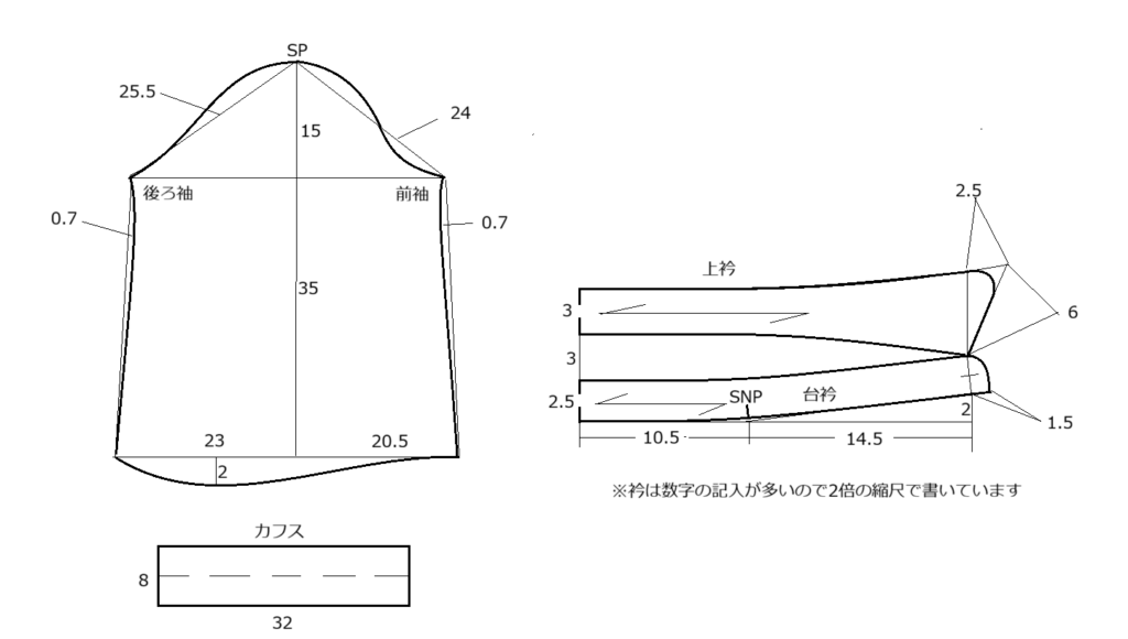 ※衿のイラストは他のパーツの2倍の大きさで書いています