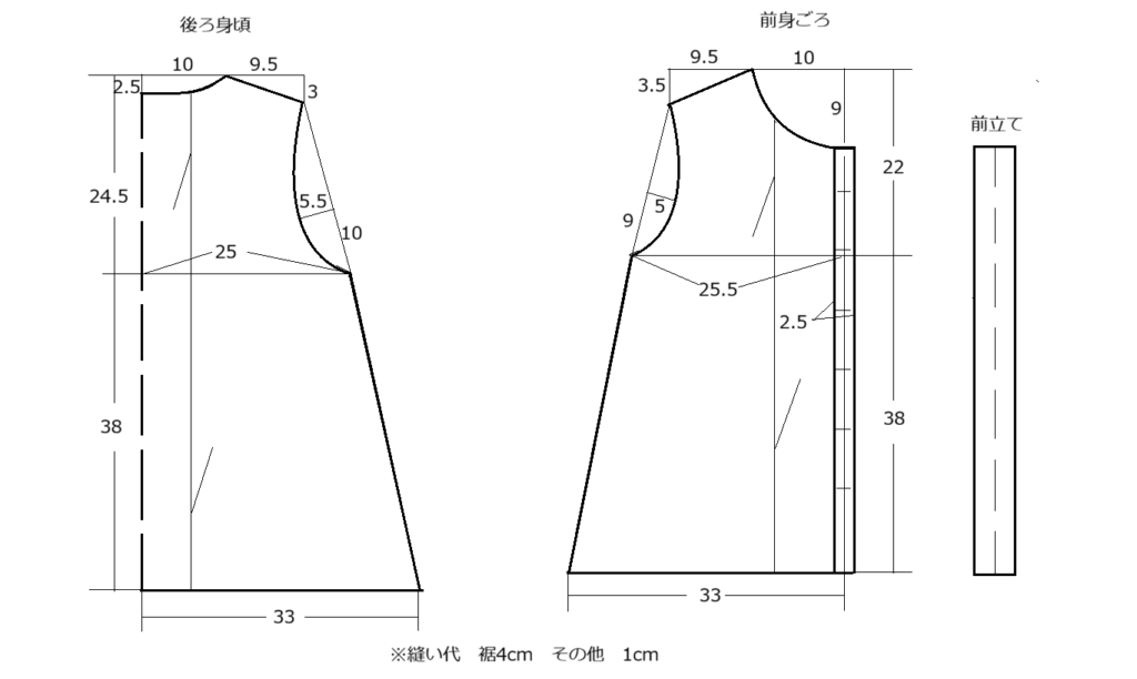 型紙の書き型図はこちらです。(縫い代はついていませんのでご注意ください)