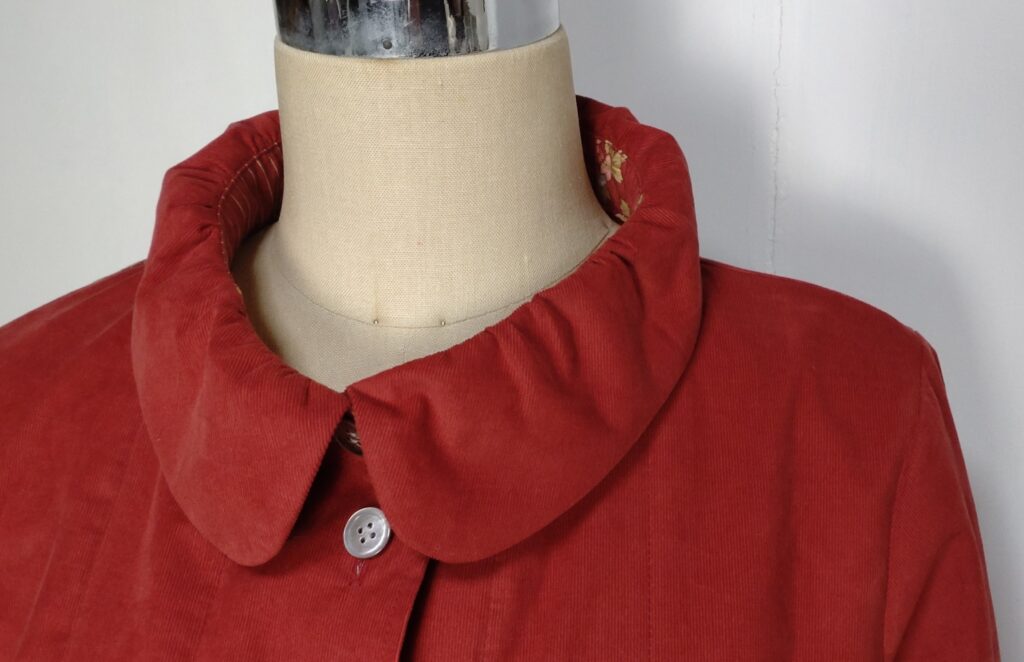 縫い方としては、いつもなら衿の外回りにステッチを入れるのですが今回はふんわりさせたかったのでステッチなしで仕立てました。