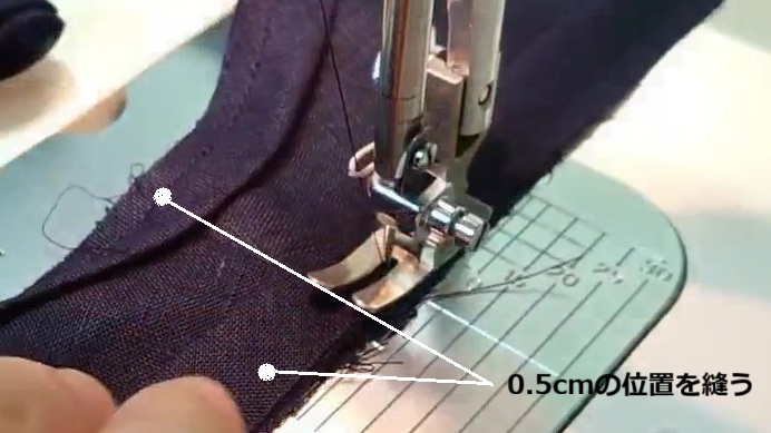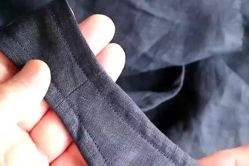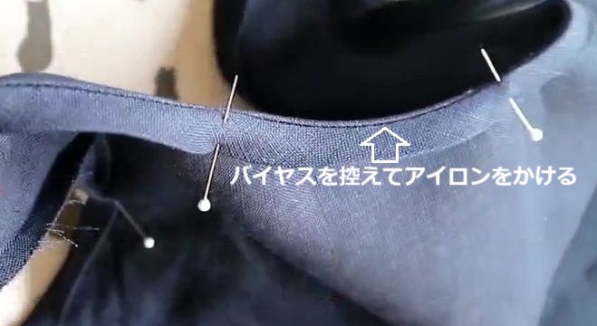 縫い方のポイントは衿ぐりと袖ぐりをバイヤスで始末するときに、くるまない方法で仕上げることです。