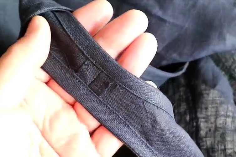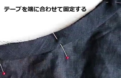 バイヤステープができたら、衿ぐりと袖ぐりに縫い合わせて仕上げます。