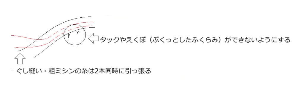 ぐし縫いや粗ミシンでイセ込みのガイドを作る