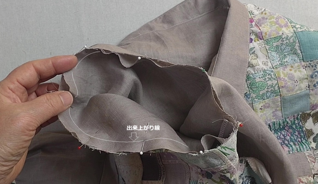 このイセ込みがきれいにできるかどうかで、袖付けの仕上がりが大きく変わります。