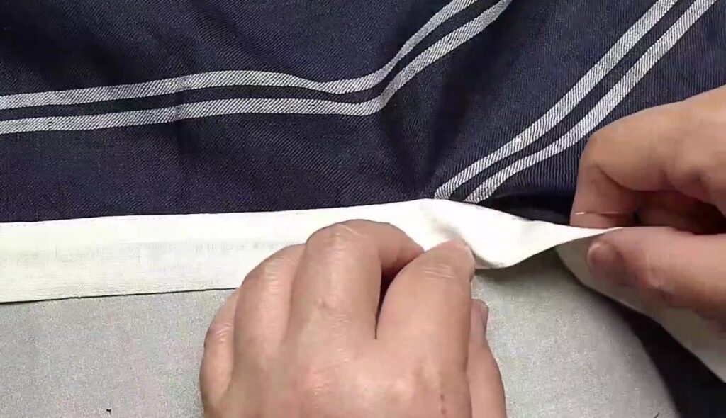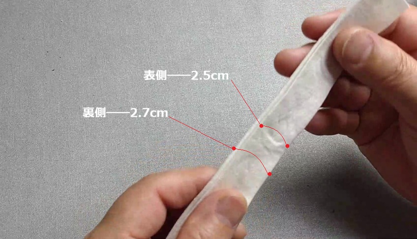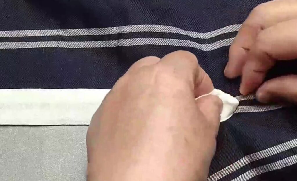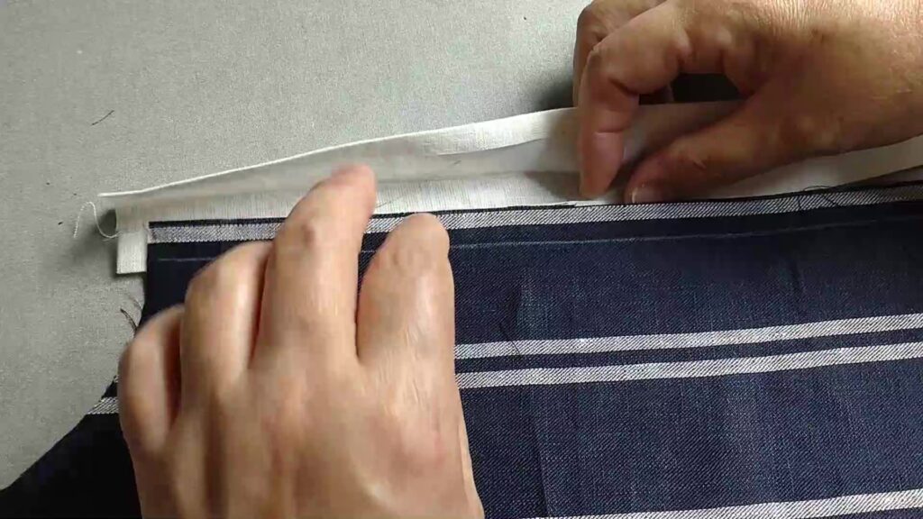 表なる方に2.5cm幅の接着芯を貼ってかぶせアイロンをかけておきます。