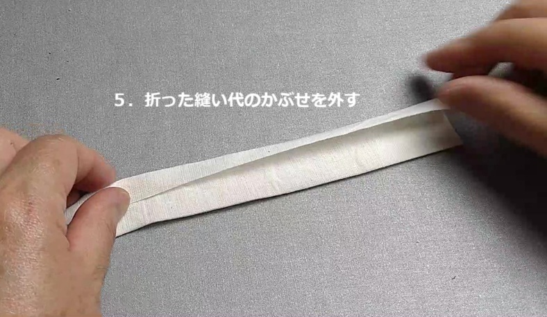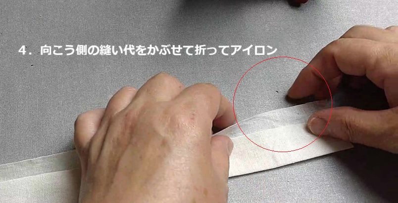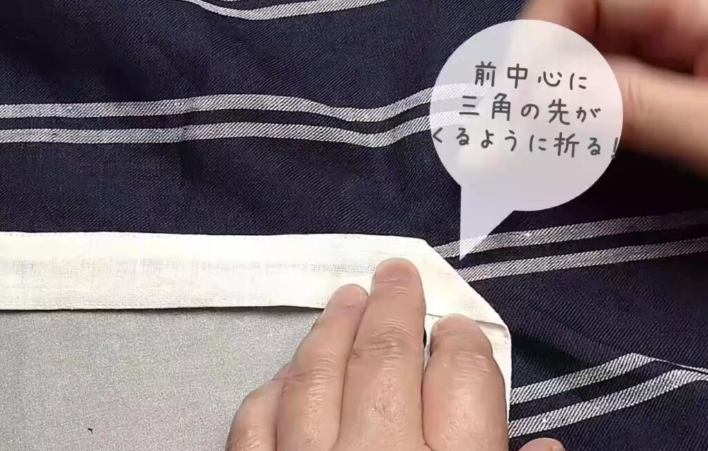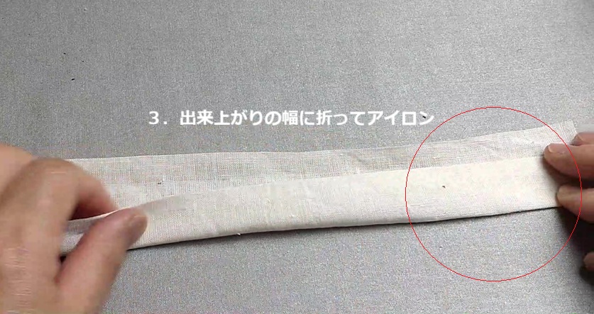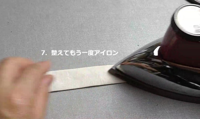 折り返すと分厚くなりますが、しっかりと折りたたんでアイロンで形を作ります。