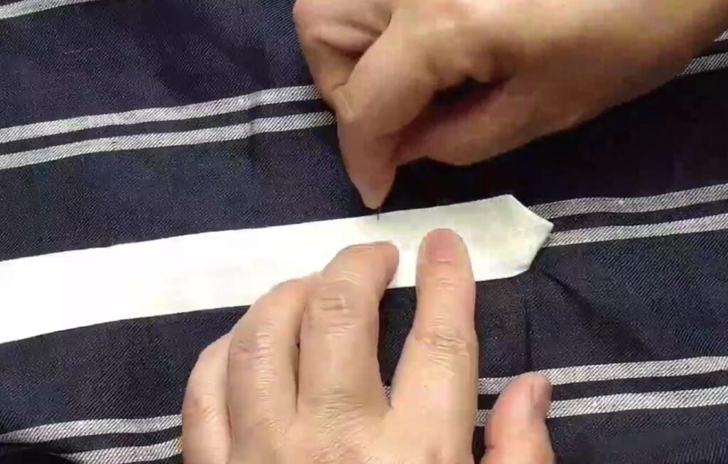 短冊が出来たら最初に書いた線に合わせて短冊を被せ縫います。